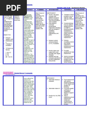 Nursing Care Plan Spontaneous Abortion Pdf Miscarriage Fetus